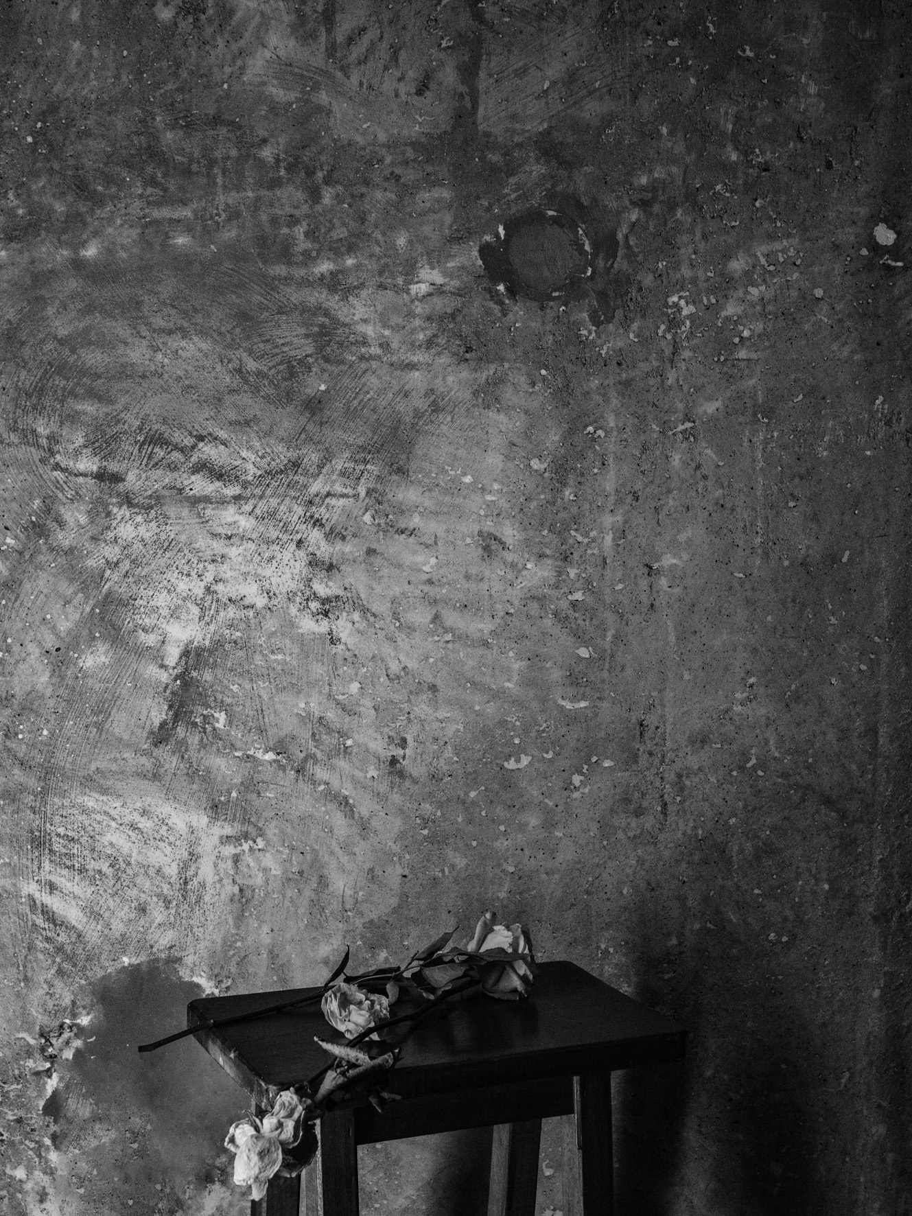 J'ai commencé à photographier cette série vers la fin d'un projet sur l'amour, G..... Chez ma compagne, un mur en béton avait souvent attiré mon attention. J'étais attiré par ce mur, mais je ne savais pas vraiment pour quoi... Est venu un temps où le sentiment d'amour entre G. et moi s'est refroidi. J'en étais affligé - doublement... Parce que de photographier, c'est d'exprimer son amour de voir et d'être. Mais voilà, plus de photos, un amour mis à mal, l'absence de ce pétillement, la souffrance de l'absence... Et un jour, mon regard se tourne à nouveau sur ce mur en béton, et je comprends un peu mieu pourquoi... Malgré les difficultés, j'ai vu dans ce mur un moyen d'exprimer certains aspects de l'amour, de la vie.